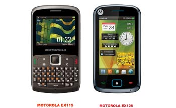 The Motorola EX115 has QWERTY keypad phone with 12.8mm thickness and the Motorola EX128 is a stylish touchscreen dual-SIM phone.