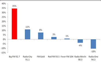 NEW DELHI: Reliance Broadcast Network’s – 92.7 BIG FM has emerged as the fastest growing radio station in Delhi. 92.7 BIG FM has shown an incredible high growth rate of 35% in listenership as compared to competition over the last 3 months (Source: RAM Week 51 2011 –Week 12 2012, All People 12+).