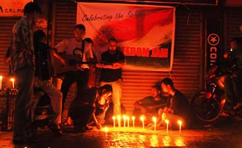 Aiyushman Dutta, one of the initiators of the session and secretary of the Eastern Beats Music Society, says, There are no big names or stars involved in the Freedom Jam session and everyone is free to join. There were no backdrops or logos and the only motive behind organizing the session was to celebrate Independence day through music. Candles are lit in the evening by the roadside and the entire act results in the creation of a very serene atmosphere, befitting the sanctity of the day….
