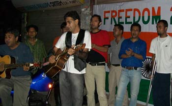 Meanwhile, taking a clue from the celebrations in Shillong, a few musicians of Guwahati also got together in the city to break the shackles of fear that had been holding them captive till now. The event, which was entitled â€?Freedom 2009′, saw the musicians bring out their guitars and motorcycles and jam together at the busy Commerce College point in the evening. More of an impromptu jamming session, the people in the area watched in awe as the musicians put up the freedom banner on the roadside and started strumming their guitars. But once Rabiul, Deepak and Joshua started the proceedings by singing evergreen numbers like Imagine, Freedom and Talking about a Revolution, it did not take long for the passers-by to join in.