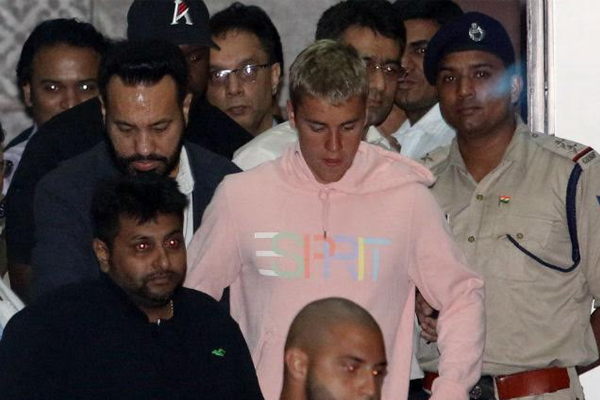 Bieber came out escorted in a thick security blanket, led by Salman Khan’s bodyguard Shera at 2 a.m.