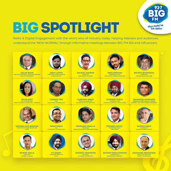 Speaking about the show, Asheesh Chatterjee, Chief Financial Officer and Chief Business Officer, BIG FM said, “Each of the leaders and influencers who are a part of the initiative Big SpotLight, have worked hard to achieve the success they have and are an inspiration to many. With years of experience, their insight and perspective is not only important, but can also help us deal with the situation at hand in a better manner. In challenging times like these, I am certain that a show like this will not only help us gain a good understanding of the situation, but also guide people, who are at home, towards working more efficiently. Their views will also help in gaining good insight on business strategies that could help in boosting the economy which is the need of the hour. Furthermore, it will help in building and strengthening the relationship with our brand partners who have been with us throughout the journey.”