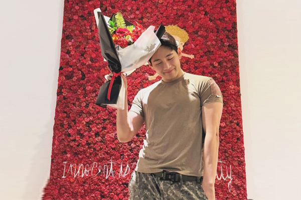 In the photo collection, V strikes a balance between charm and strength. The opening image features him holding a bouquet, his sculpted physique highlighting the impact of military training. Another snapshot captures him in full uniform, complete with a sharp new haircut, giving fans a striking look at his transformation.