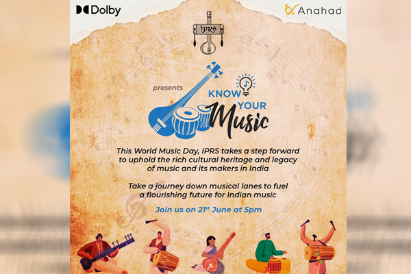 MUMBAI: Celebrating World Music Day, India’s only Copyright Society representing the authors, composers, and publishers of music – The Indian Performing Right Society Limited (IPRS) & Dolby Laboratories (a leading global innovator and developer of audio, imaging, and voice technologies) have come together to launch the campaign, “KNOWYOURMUSIC” to highlight the multiple genres of Indian music and create a more engaged audience. The launch will commence with a panel discussion on Monday, 21st, June 2021 at 5 pm with eminent personalities from the music industry like Atul Churamani (Managing Director of Turnkey Music & Publishing Pvt. Ltd), Shantanu Moitra (National award-winning Indian music composer), Hemjit Maloo (Director, Veena Music Pvt. Ltd.), Abha Hanjura (Popular Indian folk musician) and Abhinav Agarwal (Founder, Director Anahad Foundation). The session will be moderated by Mayur Puri (Lyricist, Screenwriter, and Actor). Registration to watchthe panel discussion can be done on the followinglink- https://bit.ly/2TDPrrN.