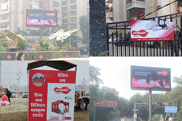 Further strengthening its association with the Maha Kumbh Mela, Eveready Lighting has also implemented extensive branding initiatives throughout Prayagraj and the Kumbh Mela grounds by facilitating hoardings and pole branding in key areas, police booth branding, no parking boards and RWA society branding, and signage near changing rooms.