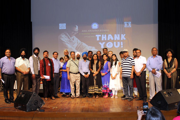 A musical program of compositions of Anil Biswas sung by top singers from the national capital region of Delhi was presented on the occasion by veteran music connoisseur Amarjit Singh Kohli, Chairman of the Sakha Cultural Society, and produced by Shailaja Menon Madhavan who also scripted and hosted the programme and was the main singer of the evening.