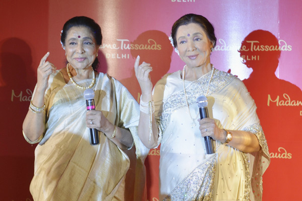 At the unveiling, Asha stood besides her wax figure, which is sculpted in a symbolic singing pose with a mic and has been crafted from over 150 measurements and photographs. She posed just like the figure — looking like a mirror image.