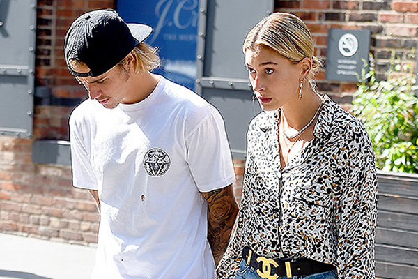 Bieber, 24, wore a casual black shirt, basketball shorts and a black baseball cap, while Baldwin, 21, wore an oversized leather jacket with her hair in a neat braid.