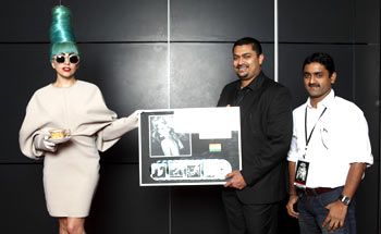 MUMBAI: Lady Gaga was accredited with a gold plaque by Universal Music India, Saarc MD Devraj Sanyal, and VP-marketing Sunil D’Sa, at Gaga’s promotional tour in Singapore.