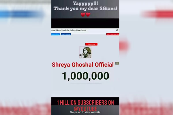 “Thank you dear #SGians for making this happen! We are 1 Million subscribers on @YouTubeIndia now! How awesome is that!” Shreya tweeted.