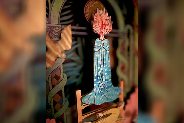 The exhibition is a harmonious blend of Ruchi’s dreamlike world and Sanjeev’s architectural installations. Inspired by folklore, totems, and mystical diagrams, Ruchi’s artwork features play and motion as dominant elements. Sanjeev’s installations, on the other hand, reimagine colonial-era buildings as whimsical, functional sculptures.