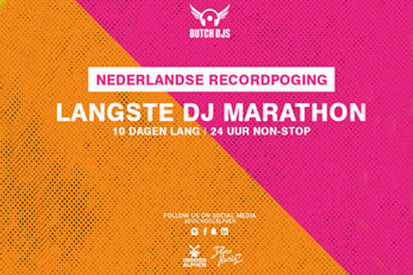 The DJ marathon started at Thursday April 9th, at 20.00 (CET), lasting until April 19th, 20.00 (CET). DJ Jean was the first DJ to play music at the DJ marathon. The world record attempt will last for 10 days, and music will be played by DJs from The Netherlands only. From top DJs to rising stars, young and old legends and DJs in any style of music – from hardstyle and urban to techno en everything dance music has to offer. The event will be streamed live via www.djmarathonlive.nl Guidelines of the RIVM and the current emergency ordinance will be followed and observed strictly during the event.