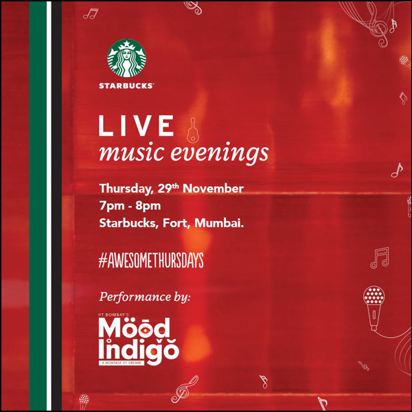 This Thursday, you are invited to Starbucks for a Live Music Evening! Popular performers of Mood Indigo will be making your acquaintance. Spend the evening grooving to the tunes of their melodious music.
